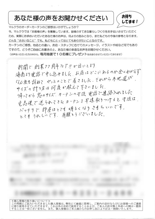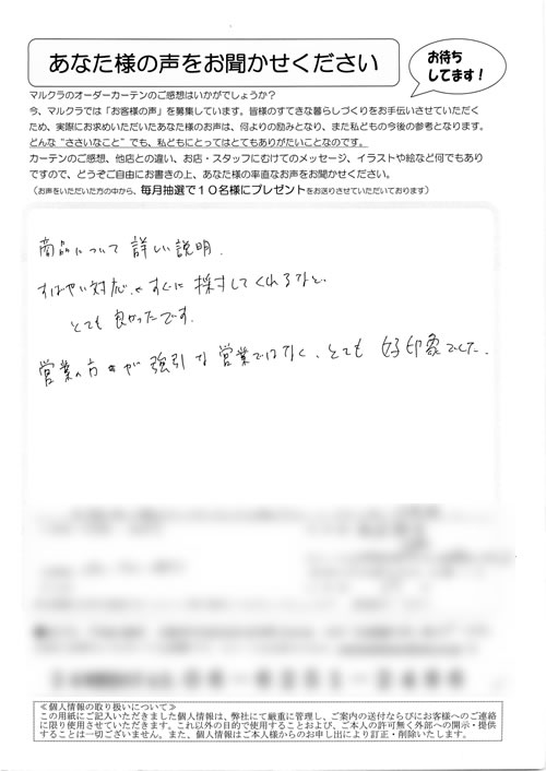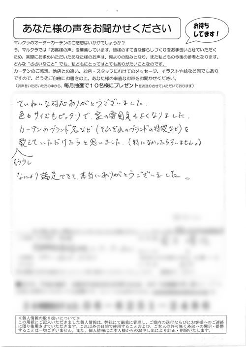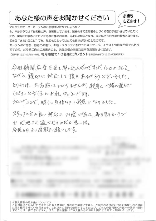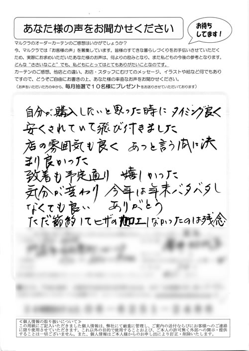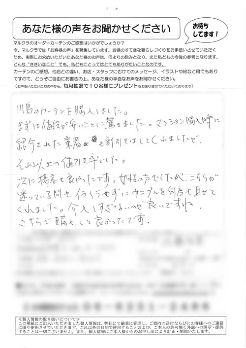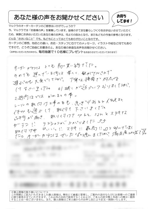口コミ お客様の声 兵庫県尼崎市 K.J様 品数の多さ、店員さんの対応がとても親切で…