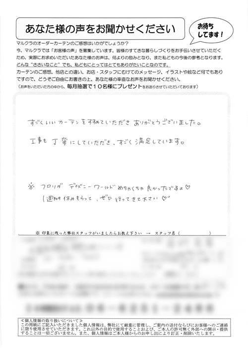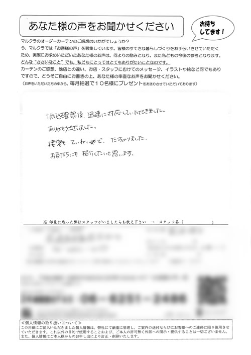 口コミ お客様の声 大阪府柏原市 T.H様 長さもピッタリで気持ちよく使っています。