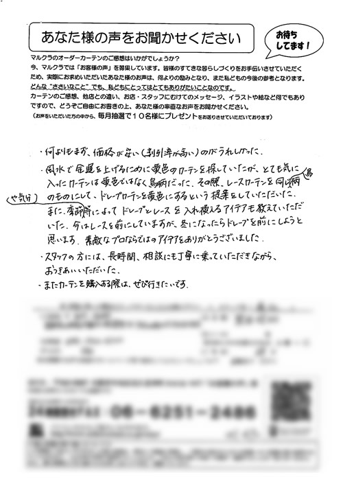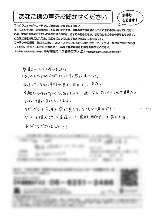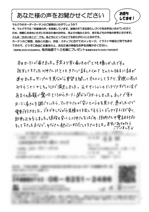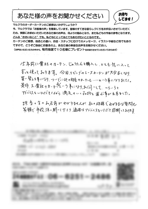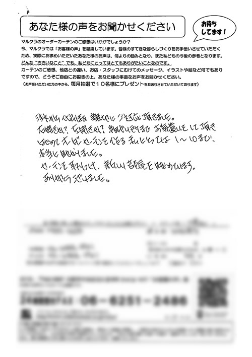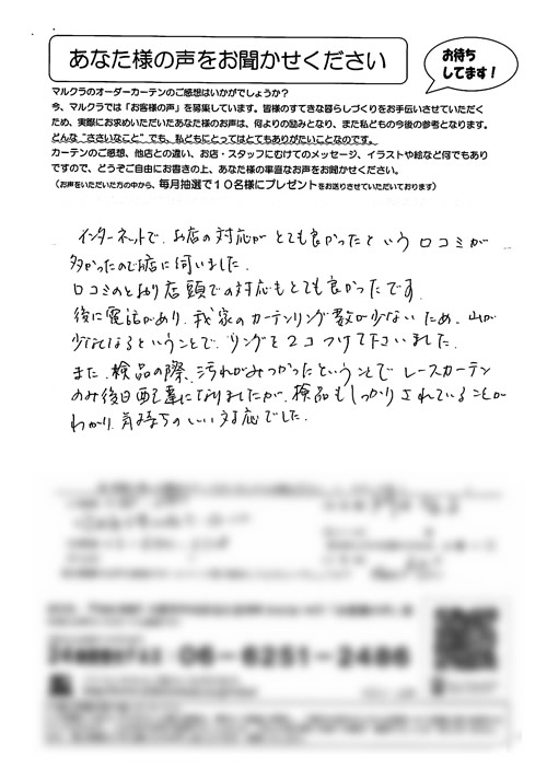 口コミ お客様の声 大阪市住吉区 Y.Y様 買いに行った時にとても親切に接客してくださり…