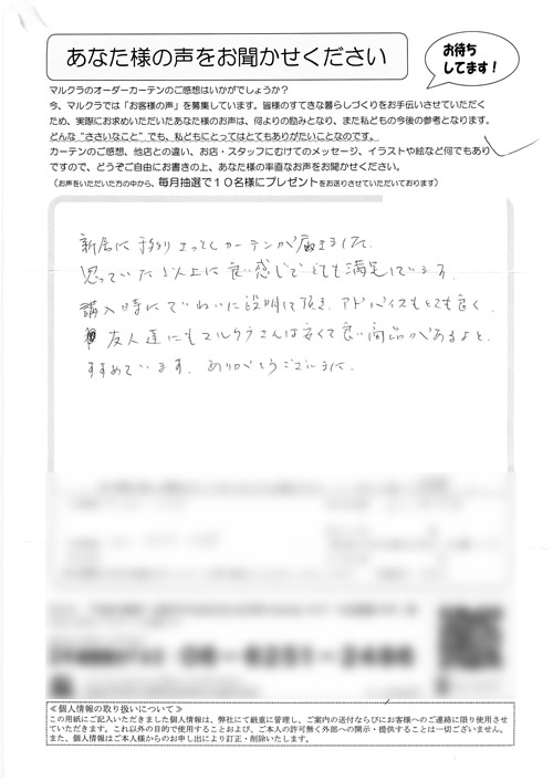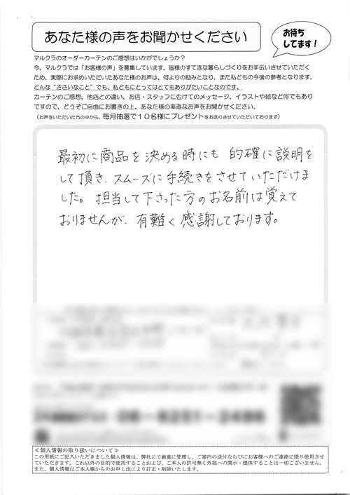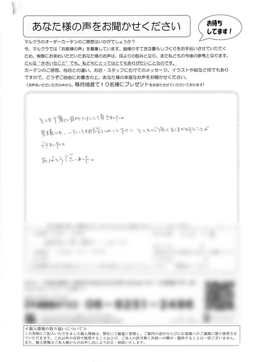 口コミ お客様の声 兵庫県姫路市 N.J様 今回はすてきなカーテン・ロールカーテンをありがとう…